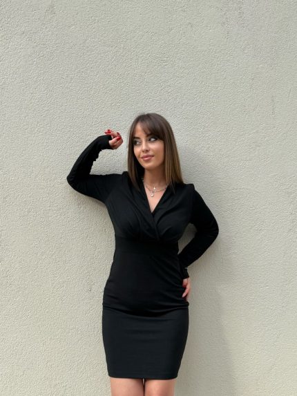 Kadın Uzun Kollu Kruvaze Yaka Krep Mini Boy Elbise