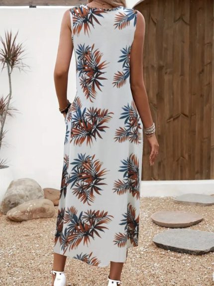 Kadın Kolsuz V Yakalı Maksi Boy Ithal Keten Elbise