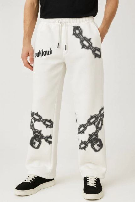 Unisex Bisiklet Yaka Baskılı Oversize T-Shirt – Beyaz