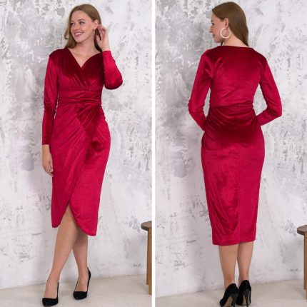 Kadın Uzun Kol Sağ Belden Sol Etek Ucuna Doğru Hafif çapraz Büzgülü Sandy Mini Boy Elbise