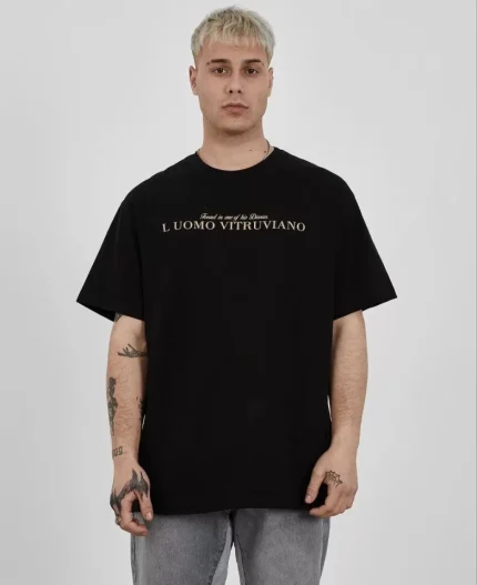 Unisex Bisiklet Yaka Baskılı Oversize T-Shirt – Siyah