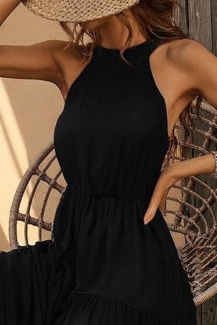 Kadın Kolsuz Halter Yaka Beli Lastiklidesenli Mikro Elbise