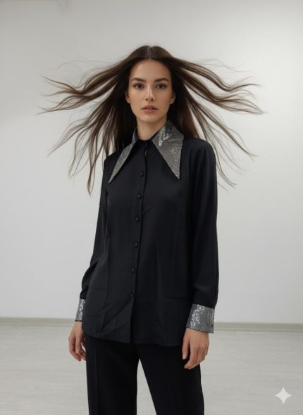 Orijinal fiyat: ₺753,65.₺678,28Şu andaki fiyat: ₺678,28.Kadın Uzun Kollu Hakim Yaka Ithal Dantel Detay Gömlek