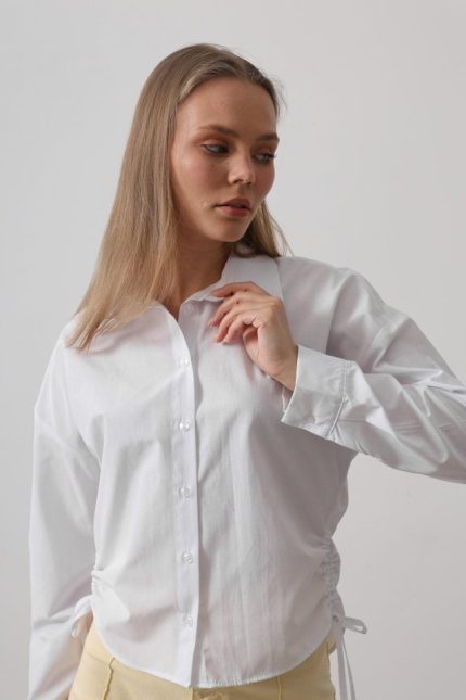Yanları Bağlamalı Basic Gömlek – Beyaz