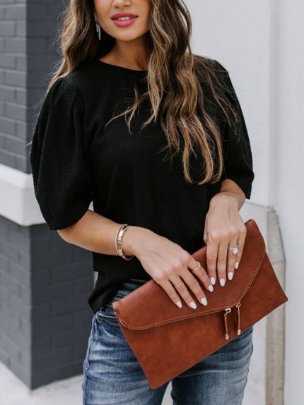 Kadın Kısa Kollu Pileli Balon Kol Bürümcük Bluz