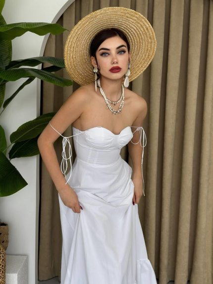 Dantel Ve Büzgülü Detay Askılı Sandy Kumaş Gecelik