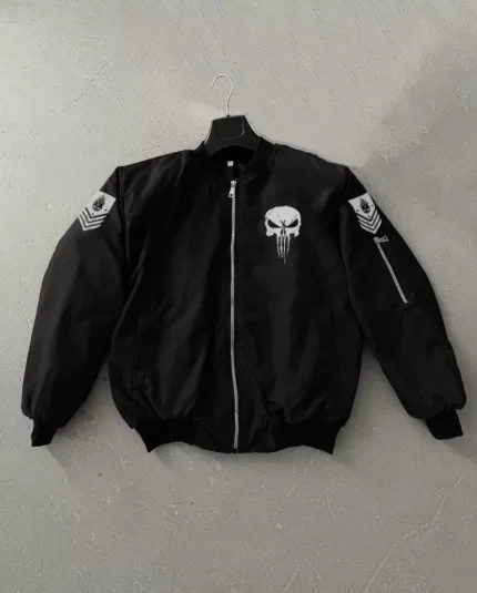 Unisex Uzun Kol Kuru Kafa Baskılı Bomber Ceket – Siyah