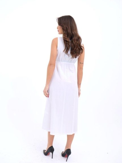 Kadın Sıfır Kollu Bisiklet Yaka Büzgülü Asimetrik Kesim Detaylı Janjan Krep Elbise