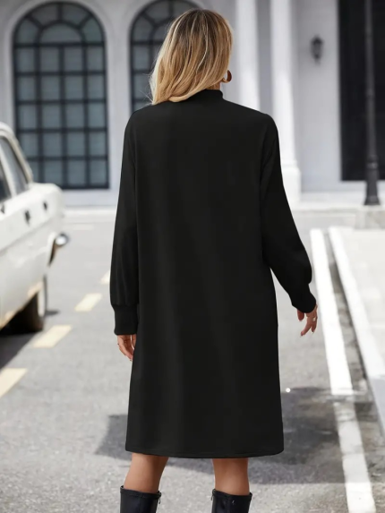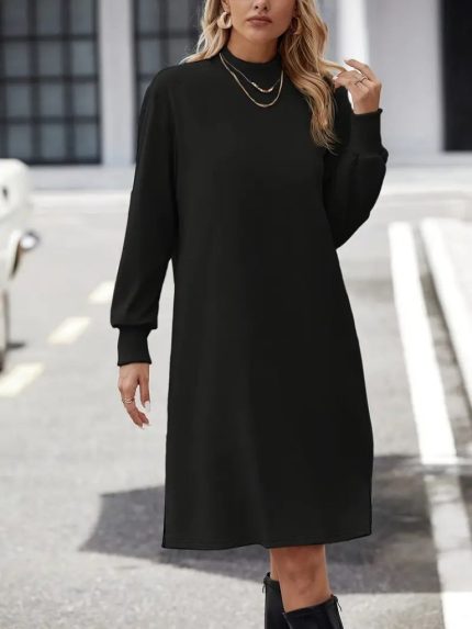 Kadın Uzun Kollu Bisiklet Yaka Midi Modal Elbise
