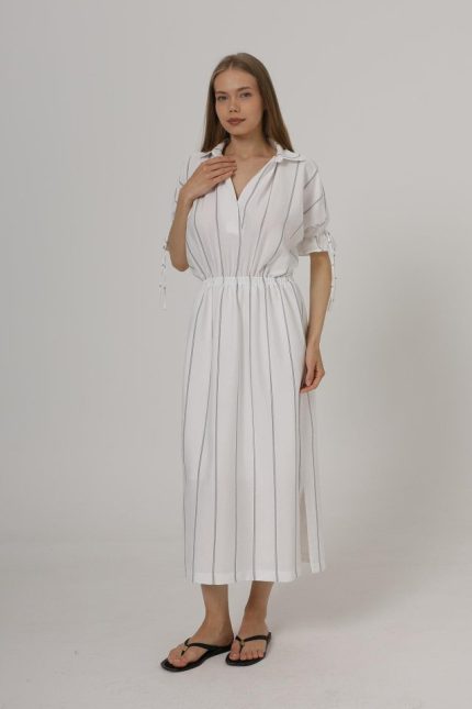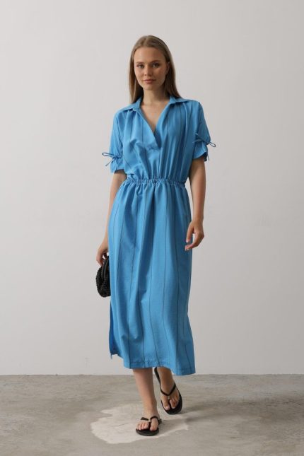Kadın Sıfır Kol şerit Detaylı V Yaka Viskon Elbise
