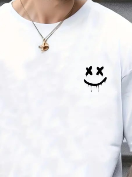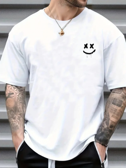 Unisex Bisiklet Yaka Baskılı Oversize T-Shirt – Beyaz