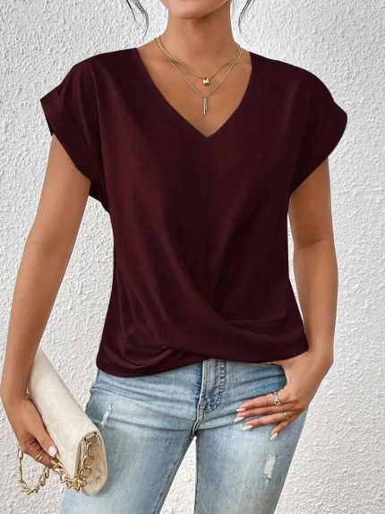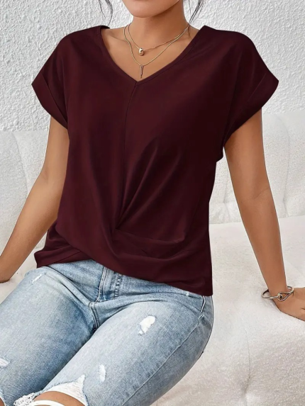 Osy Modal Yumuşak Dokulu Kumaş Kısa Kollu Bluz Rahat Pantalon Ikili Takım- Kahverengi