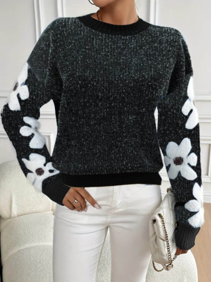 Kadın Uzun Kollu Balıkçı Yaka Bağcıklı Desenli şardonlu Dalgıç Bluz