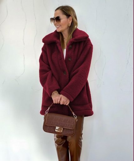 Kadın Uzun Kollu Yakalı önden Düğmeli Welsoft Kaban