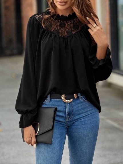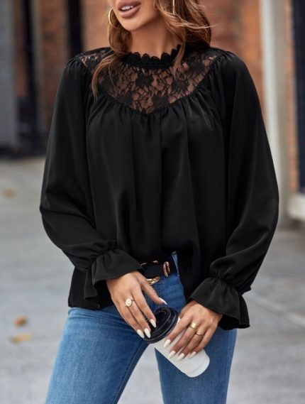 Kadın Uzun Kollu Dantelli Salaş Sandy Bluz