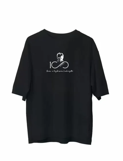 Unisex Bisiklet Yaka Baskılı Oversize T-Shirt – Siyah