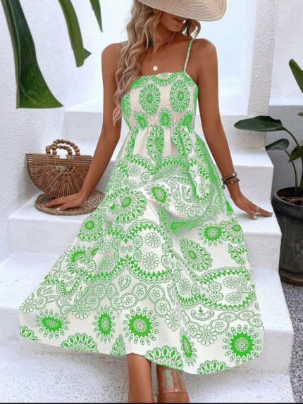 Kadın Uzun Kollu Bisiklet Yaka Papatya Desen Kuşak Dahil Maxi Boy Elbise