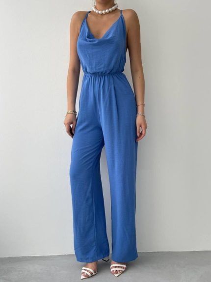 Kadın Dalgıç Krep Yırtmaç Detaylı Askılı Maxi Boy Elbise