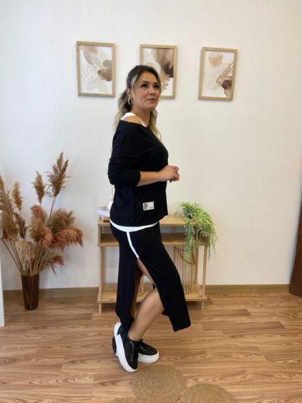 Kadın Uzun Kollu Tek Omuzu Açık Viskon Bluz Içi Atletli Ve Yandan şeritli üçlü Viskon Ikili Takım