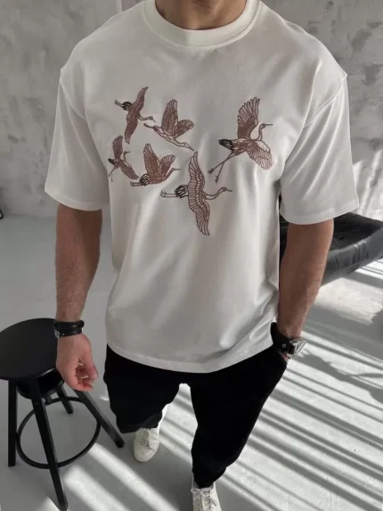 Unisex Nakış İşlemeli T-Shirt – Beyaz