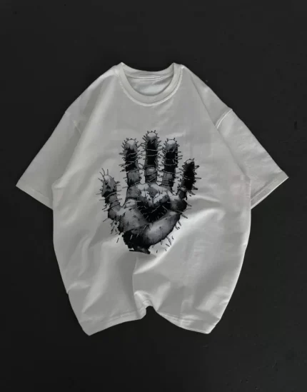 Erkek Baskılı Oversize T-shirt – Beyaz