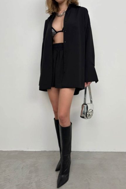 Kadın Askılı Yuvarlak Yaka Kuş Gözü Detaylı Bürümcük Bluz Ve Short Ikili Takım