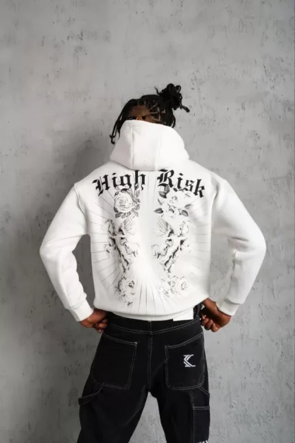 Erkek Baskılı Kapşonlu Sweat – Beyaz