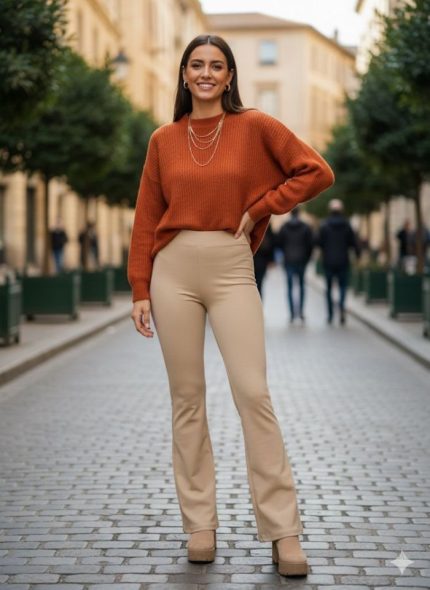 Kadın Yüksek Bel Ispanyol Paçalı Pantolon Tayt