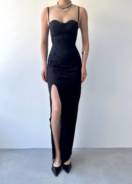 Kaitlyn Sırt Dekolteli V Yaka Yırtmaçlı Elbise