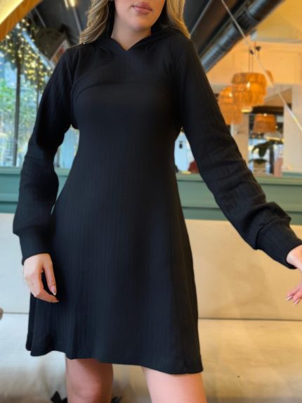 Kadın Uzun Kollu Kapüşonlu Ceket üst Ve Askısız Kare Yaka A Kesim şardonlu Kaşkorse Elbise