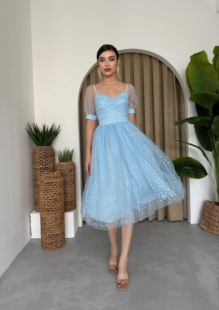 Kadın Uzun Kollu Göğüs Damla Detay Karpuz Kol Krep Elbise