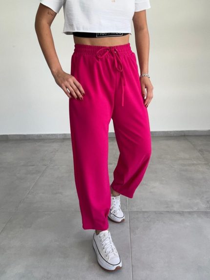 Kadın Yüksek Bel Lastikli Belde Bağcık Detaylı Aerobin Pantolon