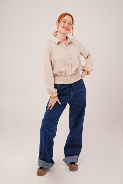 Bel Ve Bilek Lastikli Bej Bluz
