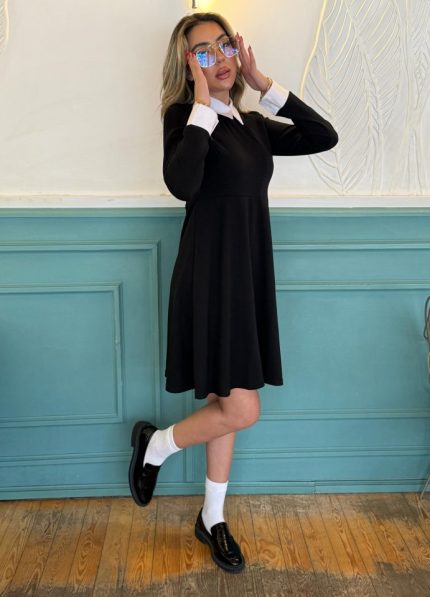Kadın Kısa Kollu Kare Yaka Parçalı Desen Dalgıç Elbise