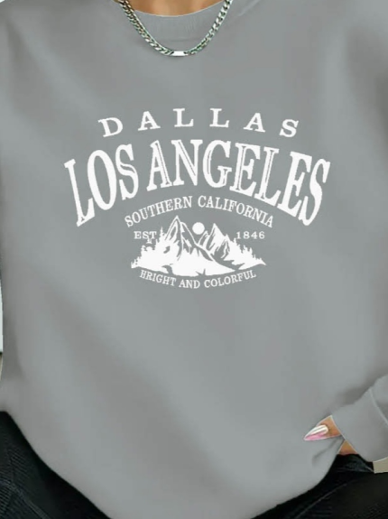Parçalı Bisiklet Yaka Baskılı SweatShirt – Bej
