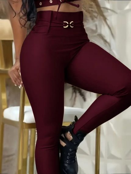 Kadın Yüksek Bel İspanyol Paçalı Yanlardan şerit Detaylı Dalgıç Tayt Pantolon