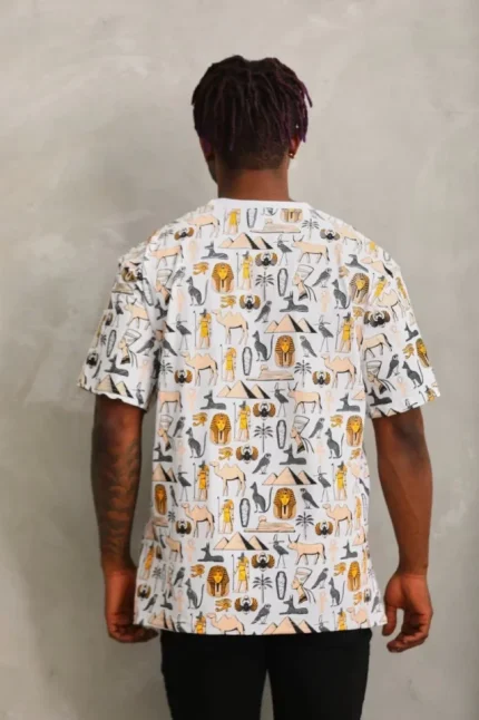 Unisex Oversize Baskılı Bisiklet Yaka T-Shirt – Beyaz