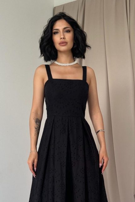 Kadın Omuz Askılı Derin Yırtmaç Detay Maxi Boy Elbise