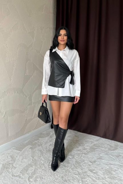 Beyaz Yandan Bağlamalı Yelek Gömlek