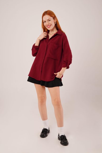 BEL BÜZGÜ DETAYLI POPLİN GÖMLEK – Kahverengi