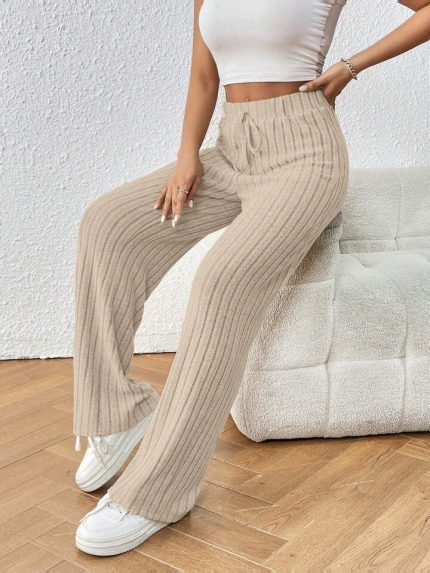 Kadın Hafif şardonlu Full Likralı Fitilli Kaşkorse Kumaş Bol Paça Pantolon