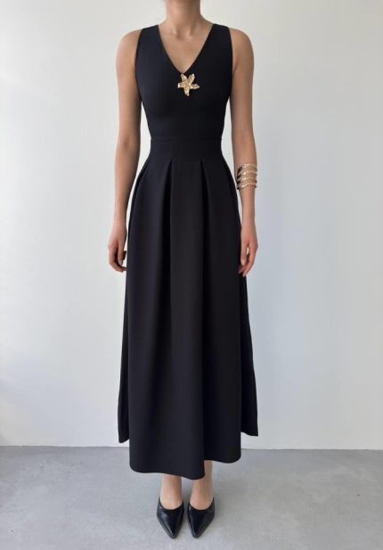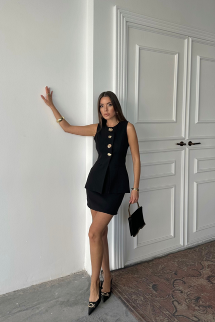 KLASİK GOLD DÜĞMELİ YELEK – KISA ETEK TAKIM – Siyah