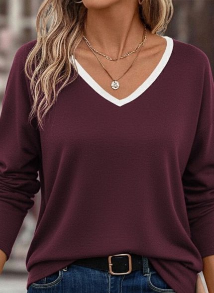 Kadın Uzun Kollu Bisiklet Yaka Viskon Iki Iplik Bluz