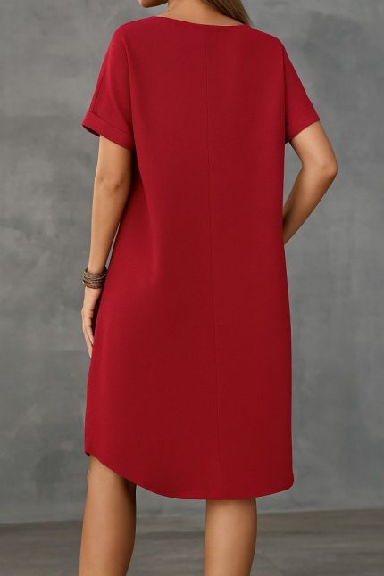 Kadın Kısa Kollu Kayık Yaka Bürümcük Elbise