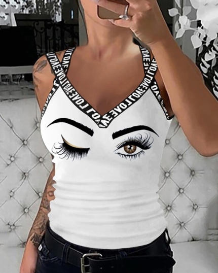 Kadın çapraz şeritli Göz Baskılı Viskon Bluz