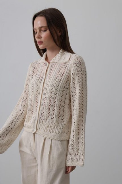 Gömlek Yaka Uzun Kol Triko – Ekru