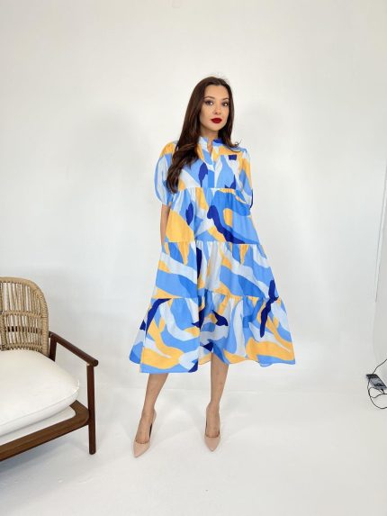 Kadın Kısa Balon Kollu Bisiklet Yaka Geniş Kesim Janjan Krep Elbise