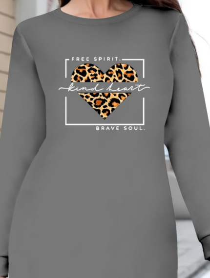 Kadın Uzun Kollu Bisiklet Yaka şerit Leopar Desenli Dalgıç Elbise