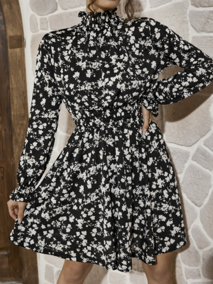 Kadın Uzun Kollu Bisiklet Yaka Desenli Viskon Iki Iplik Elbise