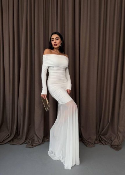 Kadın Uzun Kollu Balıkçı Yaka Yırtmaçlı Krep Elbise